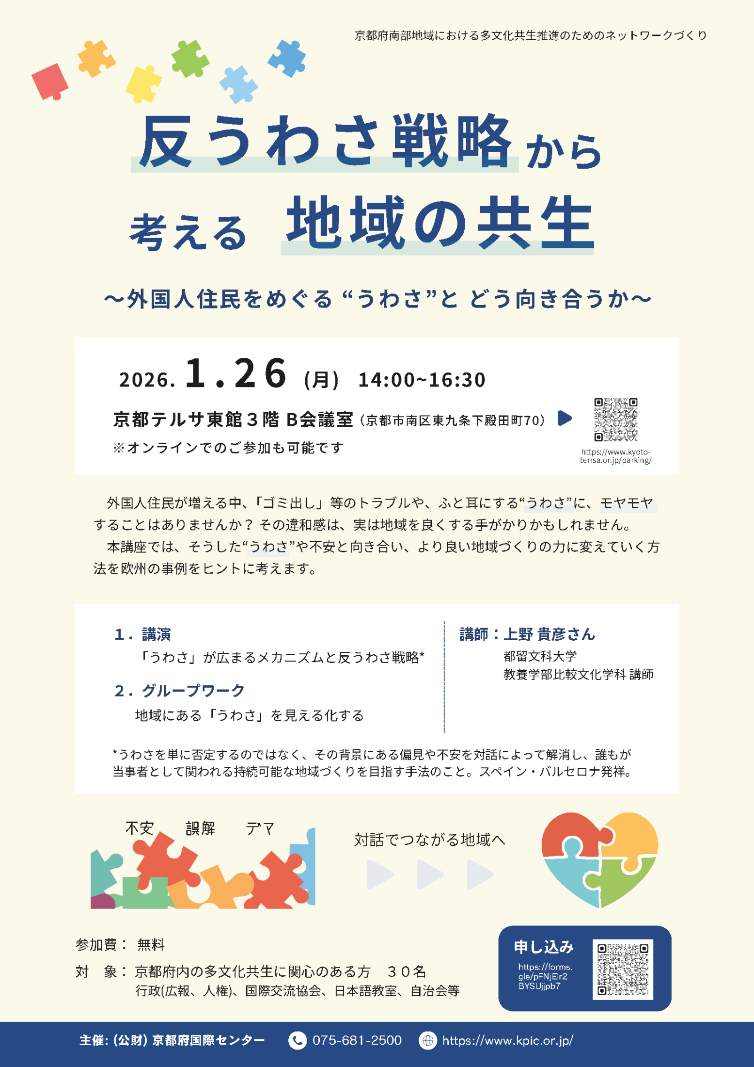 京都府内の市町村、国際交流協会、日本語教室、自治会等、多文化共生に関心のある方