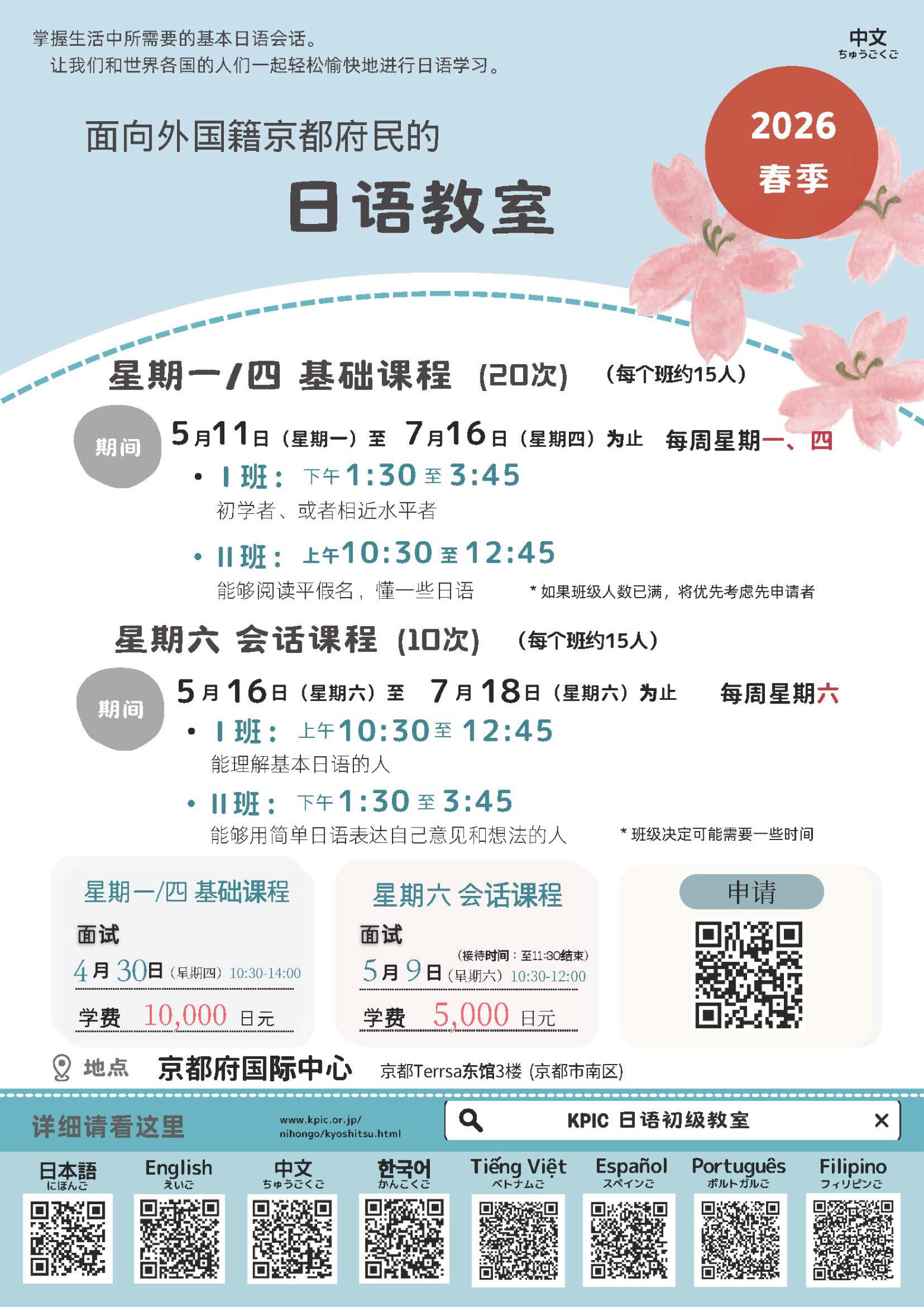 授课教师为京都府国际中心注册的专业日语教师(经验丰富)。