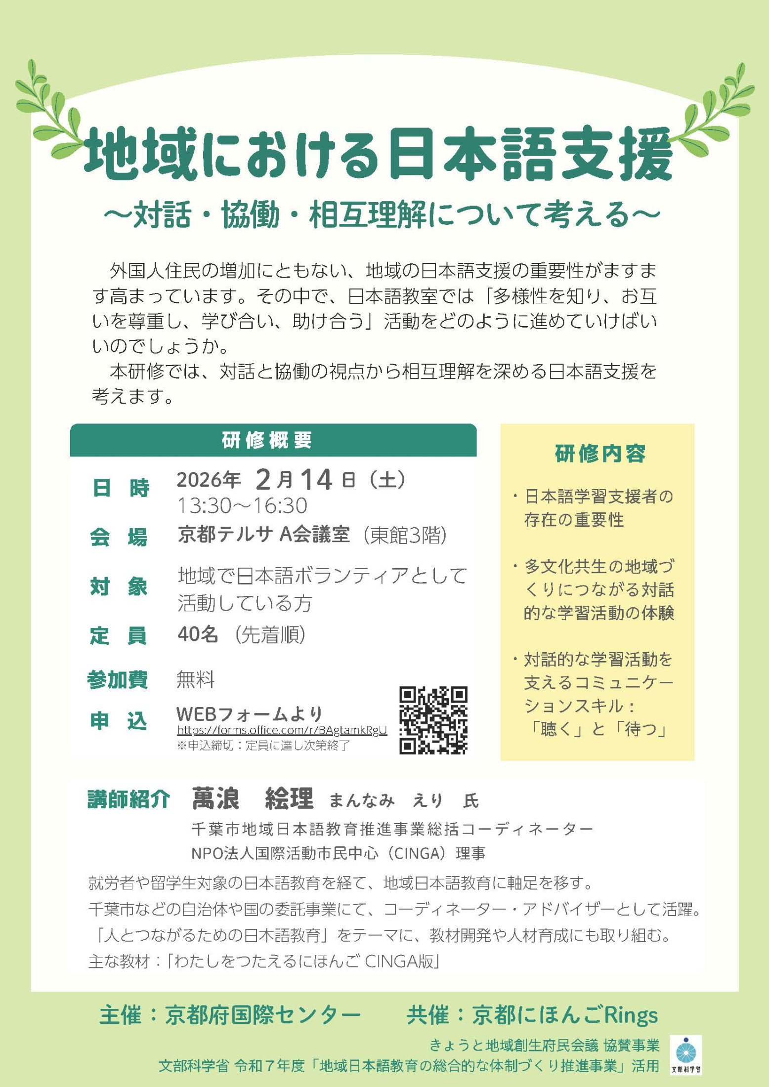 (公財)京都府国際センター、京都にほんごRings